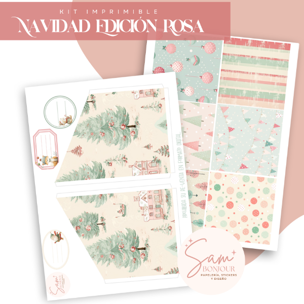 Diseñado en una paleta de rosas suaves, dorado y blanco, trae toda la magia navideña con un toque dulce y delicado 🌸