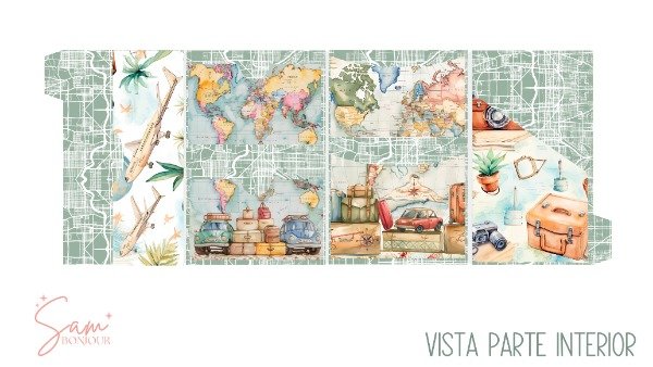 Un PDF que contiene 9 paginas para armar un folio/ carpeta que sirve para guardar papelitos, mas tags y papeles decorativos.