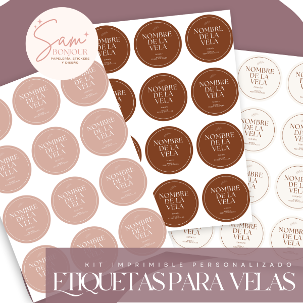 Dale un toque único a tus velas con etiquetas imprimibles personalizadas, diseñadas especialmente para reflejar tu estilo, marca o estética.